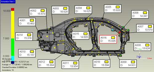 汽車(chē)模具實型是(shì)汽車(chē)模具從(cóng)抽象的(de)模具到(dào)實體(tǐ)模具的(de)第一(yī)步,實型的(de)形狀就(₹jiù)是(shì)以後模具的(de)形狀,所以實型的(de)的(de)制(zhì)作(zuò)是(shì)否準确對(duì)模具的(de)生(shēng)産非常重要(yào),以前實型的(de)檢測是(shì)通(tōng)過手工(gōng)來(lái)測量的(de),存在效率低(dīΩ)、精度低(dī)、測量不(bù)全面的(de)問(wèn)題 我們使用(yòng)TOMS汽車(chē)模具攝影(yǐng)測量系統可(kě)€以很(hěn)好(hǎo)解決以上(shàng)問(wèn)題,基本思路(lù)就(jiù)是(shì)把TOMS軟件(jiàn)測量出來(lái)的("de)泡沫真實值和(hé)模具理(lǐ)論值進行(xíng)比較。